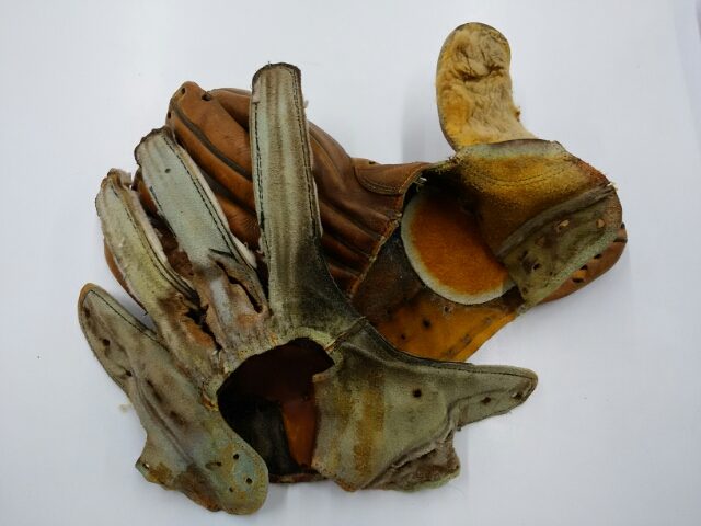 2020年5月17日 / 最終更新日時 : 2021年11月18日 onoyamasp@WEBMGR リペア(修理) グラブ修理(大里様) 受球面の補強と平裏、指袋、指芯、指かけ、ムートン、ヘリ革を交換し、グリスを入れ、ウエブと革紐の一部を張り替えしました。