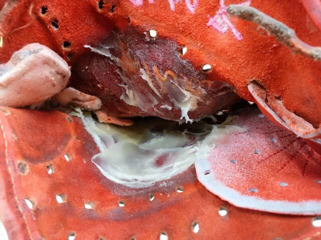 2020年7月12日 / 最終更新日時 : 2021年11月26日 onoyamasp@WEBMGR リペア(修理) グラブ修理(國吉様) 受給面と背面の破れを補強し、グリスを入れ革紐の一部を張り替えしました。